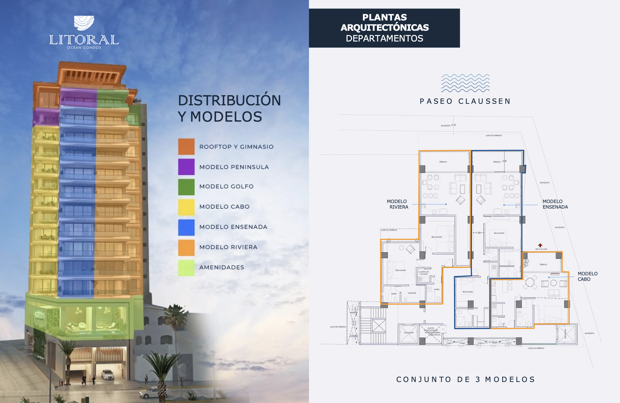 LITORAL, es una torre de solo 32 departamentos, ubicada frente al malecón de Mazatlán, frente al Paseo Claussen, ideal para disfrutar de ese espectáculo natural diario que le llaman "atardecer".