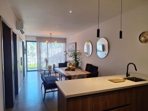 El edificio cuenta con acceso controlado, 1 cajón de estacionamiento por cada departamento, elevador, escaleras, y en el rooftop una amplia alberca infinity y áreas de asadores familiares.