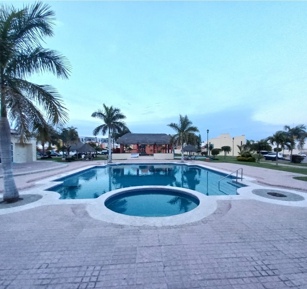 El fraccionamiento cuenta con acceso controlado y cámaras de circuito cerrado 24/7, tiene una amplia alberca, casa club, pista para caminar, palapas, asadores y juegos infantiles.